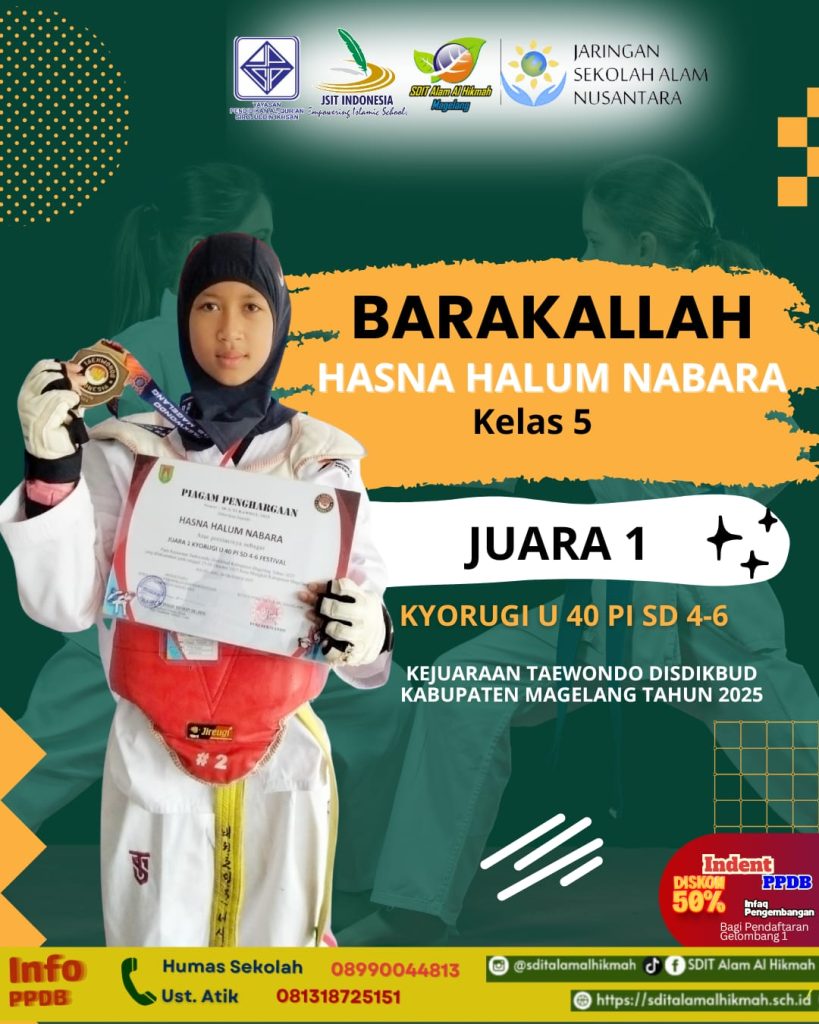 “Alhamdulillah, selamat atas prestasi juara di kejuaraan Taekwondo. Semoga terus menginspirasi dan meningkatkan semangat berlatih.”💪🏽🥋