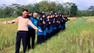 Pagi ini semua guru dan karyawan menjelajahi persawahan dan menikmati suasana yang sejuk dan asri. semua bersuka ria sambil berolahraga. Memakai nuansa baju olahraga berwarna biru, hitam dan coklat.